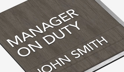 manager on duty sign w/ nameplate
