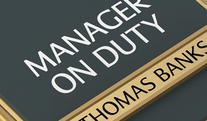manager on duty sign w/ nameplate