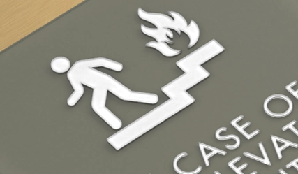 in case of fire, elevators are out of service... w/ no braille