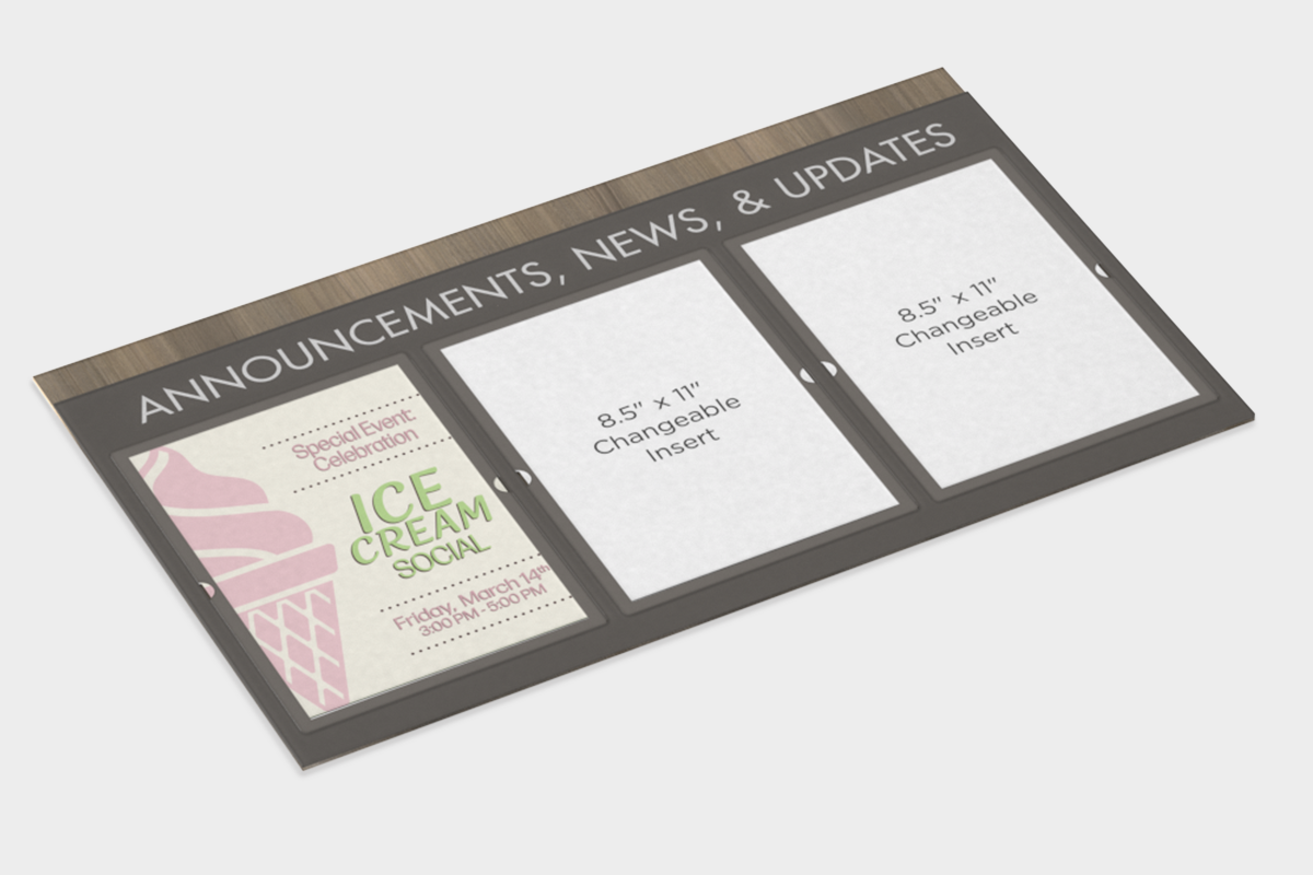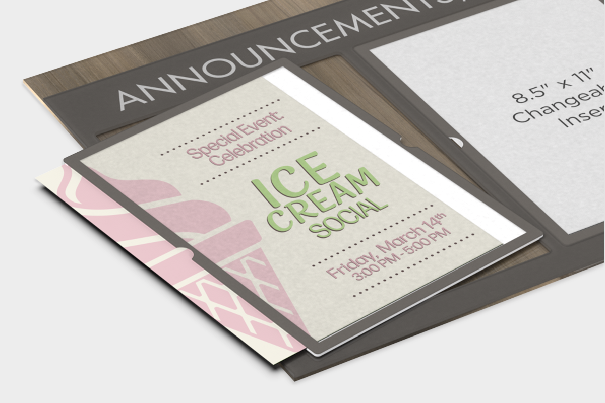 • Suggested uses: menus, daily activities, or upcoming events.